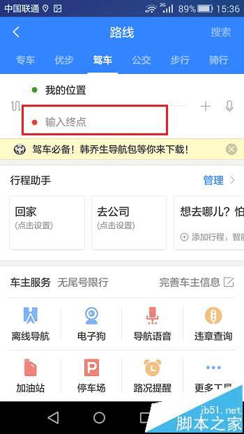 2、选择驾车,输好目的地,点击搜索,如下图所示: