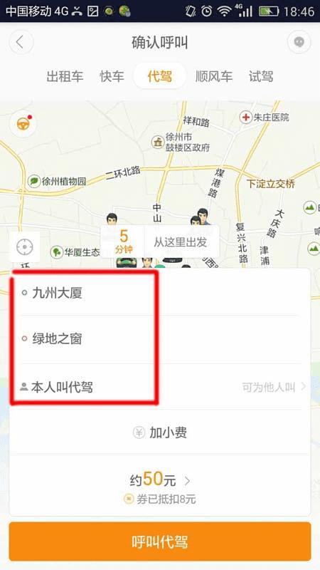 3、输入家庭地址,直接返回到代驾页面,点击代驾就好了。