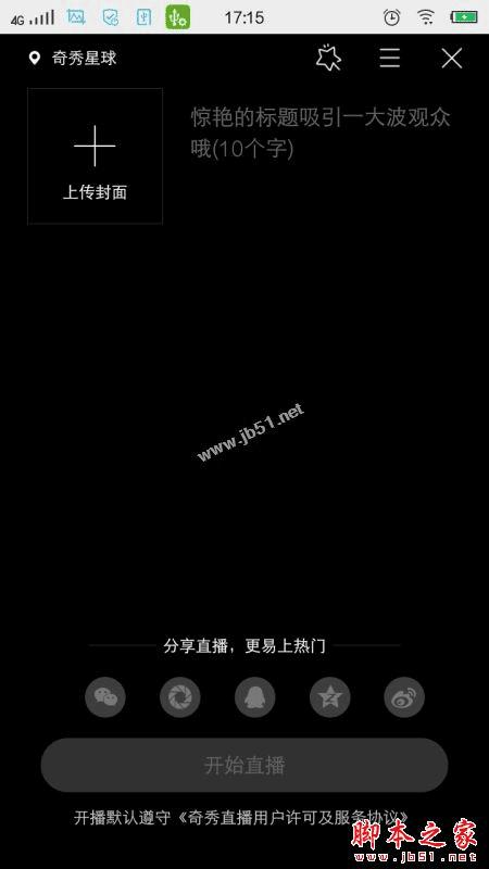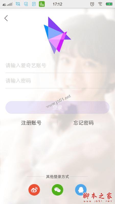 3、点击打开,进入奇秀直播app注册界面,有微信、微博、QQ和爱奇艺账号四种注册方式,任选一种登录;