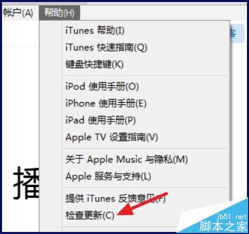 2、如果已经有安装好iTunes,记得点【帮助】-【检查更新】更新到最新版