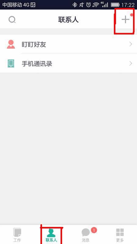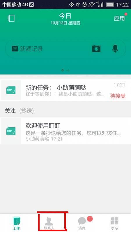 1、下载盯盯app并打开,点击“联系人”,如下图所示。