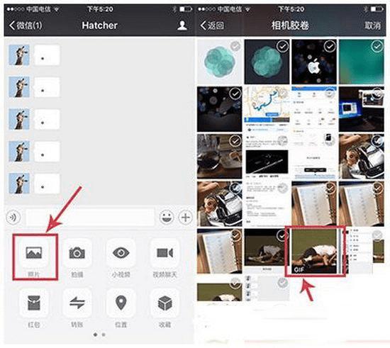 3、打开微信,选择发送图片,发现图片左下角有GIF标示,直接选择它发送即可。