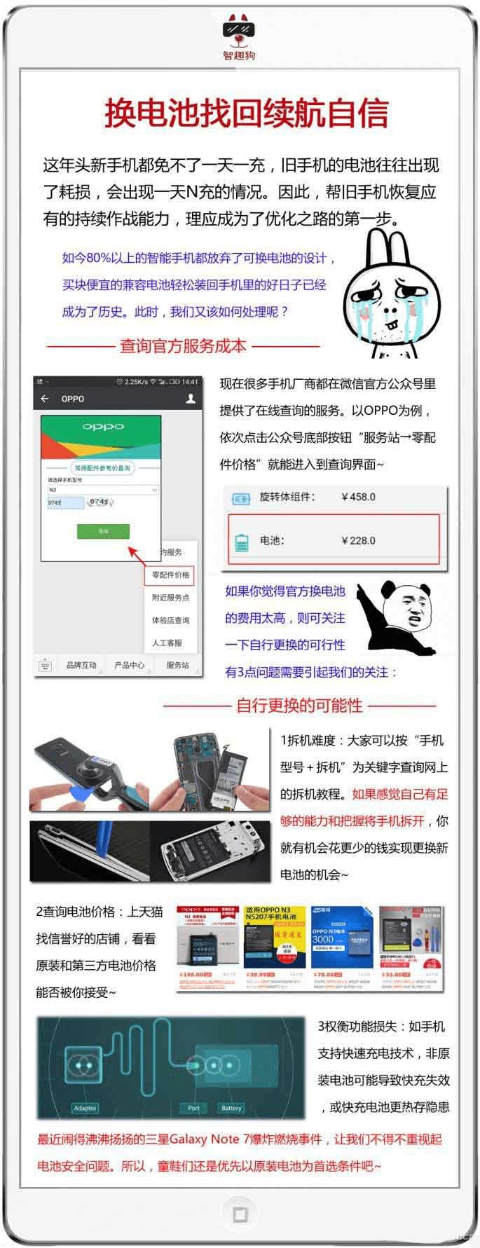 在更换电池的部分里,像高通QC和联发科PEP快充技术,理论上对电池没有特别的要求,只要手机和充电器支持,更换兼容电池后应该也能激活9V或12V的快充功能。但是,手机在快充模式时会电池温度会明显提升,对兼容电池的品质要求更高。如果电池品质不过关,很有可能在快充过程中出现危险。因此,出于安全的角度考虑,如果你为手机更换了兼容电池,可以考虑使用不支持快充的充电头给其充电(比如原创充电头支持9V/2A,那就换成只支持5V/2A的充电头)。