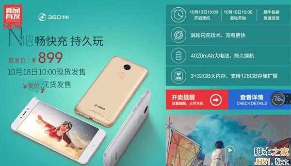 360手机n4a于10月13日今天的16:00正式在360商城、360手机商城和苏宁易购开启预约,将于10月18日上午10:00首发上市,感兴趣的朋友不妨关注一下。