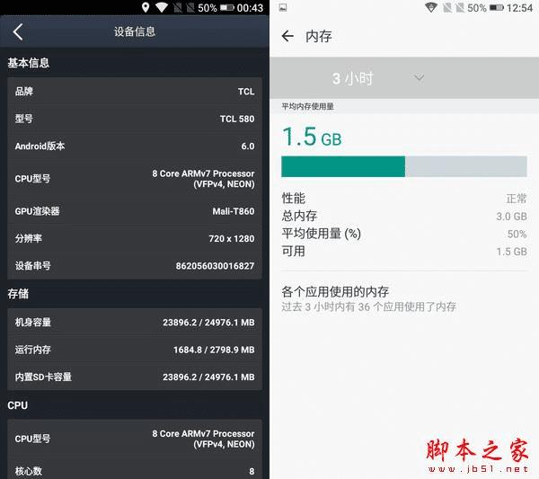 在参数上来看TCL 580虽然不算亮眼,但在使用上的流畅感和机身的精致感会让你在不知道它的详细配置之前以为这是一台价位2000打上的手机。在正常的使用环境中,3GB运行内存的占用率大概在50%左右,足够打开多个程序或者处理复杂的办公任务。