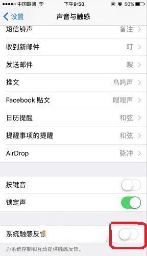 关闭iPhone7开关振动功能的方法 来源:www.45fan.com 2016-11-18 21:26:07 关闭iPhone7开关振动功能的方法 1.打开手机的设置,下拉点击“声音与触感”,如图: 2.接着将“系统触感反馈”后面的开关调至关闭状态即可,如图: 以上就是小编为大家带来的iPhone7关闭下拉通知中心和开关振动方法了 推荐阅读 使用iPhone7看行货水货的步骤 Iphone7设置facebook端口的方法 iPhone7换微信提示音方法 iphone7plus双摄像头无法使用的解决方法 华为Mate9和iPhone7Plus的拍照效果对比结 iphone7保修时间多久? 使用iPhone7连接电脑的步骤 iphone7进入DFU模式的方法技巧 苹果iPhone7亮蓝色的真机评测 如何解决iPhone7截图不出现小白点的问题
