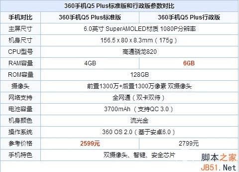 规格部分,360手机q5plus采用来自三星的6英寸Super AMOLED屏幕,2.7mm窄边框设计;搭载高通骁龙820处理器,6GB LPDDR4内存,标配128GB UFS 2.0机身存储,内置3700mAh容量电池,官方宣称的续航时间为一天半,支持高通Quick Charge 3.0快充;支持双卡双待和7模18频全网通。