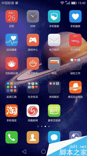 界面的设计仍然延续了上几个系统版本的设计风格,整体设计偏向扁平化,图标看起来比较细腻。此外,荣耀畅玩5C搭载的EMUI 4.1仍然采用了比较深色的桌面背景,整体界面给人的感觉比较稳重。而交互逻辑方面,其与普遍的定制系统并没有太大的区别,如长按可以编辑整理桌面菜单以及下拉打开任务菜单等等。