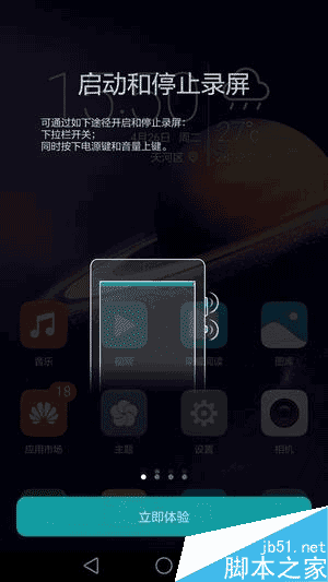 此外,除了长截图功能,荣耀畅玩5C还支持了录屏功能,而且还支持720P高清视频的录制。在任何界面,只需要同时长按电源键和音量 键便可以唤醒录屏功能。