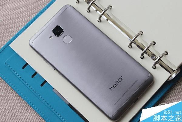 荣耀畅玩5C的金属背盖同样采用了三段式的设计,但是处理方式则相对比较独特。金属后盖表面采用了拉丝纹路的处理,而摄像头、指纹识别按键以及品牌Logo的设计布局则和荣耀5X相似。