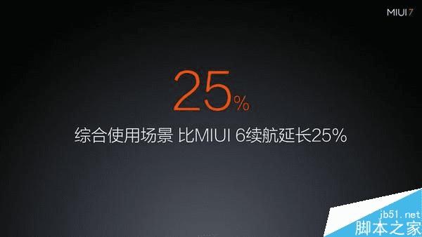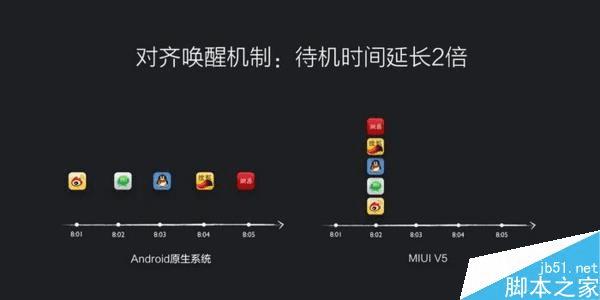 当初发布MIUI 7的时候,与之出现的还有MIUI的省电模式——对齐唤醒机制。雷军表示在这种省电机制下面,手机续航时间可以增加25%,待机时间至少增加三个小时。三个小时的待机时间对于一天一充的Andriod来说实在诱人。
