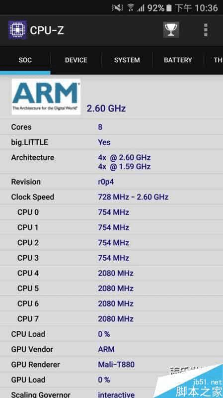 首先是处理器部分,此次S7共有两个处理器版本,分别为Exynos 8890以及骁龙820,笔者手上拿到的这两台机器均为Exynos 8890。作为三星新一代旗舰处理器,它采用的是14nm FinFET制造工艺,集成了4颗自主架构核心与4颗Cortex A53核心,相比上一代Exynos 7420,性能提升30%以上,功耗降低10%。