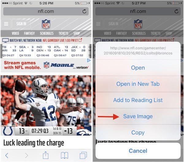 简单来说就是,如果你对iOS 10Safari中的图片(如果图片同时也是可点击的链接)执行长按操作的话,你已经在弹出来的菜单中看不到“保存图片”的选项了。而在iOS 9.3.5中执行同样的操作的话,就能够看到“保存图片”的选项(下图),点击后图片就会保存到系统相册中,十分方便。