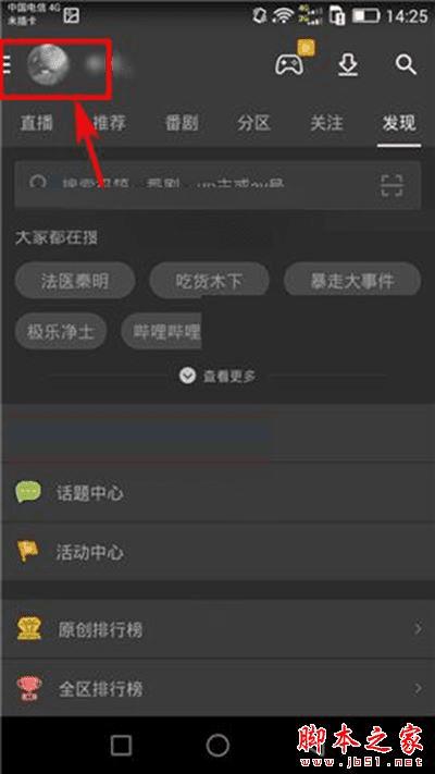 1、打开哔哩哔哩动画app,点击主界面左上角处的个人用户头像,接着进入【我的收藏】。(如下图)