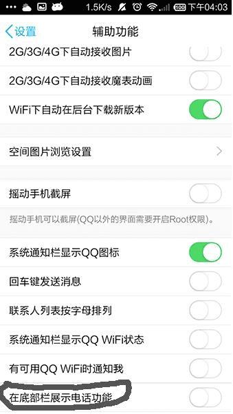 给手机QQ设置底部显示电话功能的方法