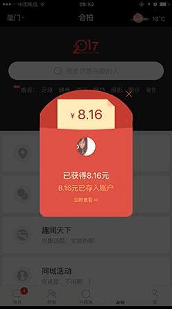 1、无论新老用户,一进入合拍,就能收到合拍送出的三个红包啦