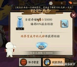 除了体力食盒外,又加了个经验酒壶,是储存结界育成里溢出的经验,再也不用担心结界经验溢出了。