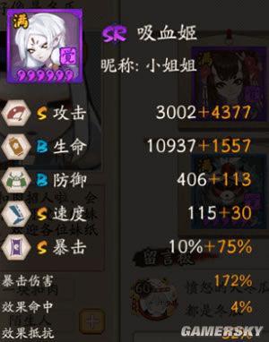 优点:残血爆发力惊人,输出靠平a,不消耗鬼火,给其他四个式神留有足够的搭配空间,面板生命防御属性较好,生存能力强。对方在秒不掉吸血姬的情况下不敢轻易把吸血姬打成残血。