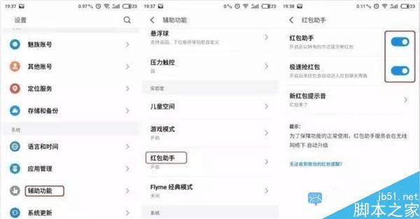 激活方法也很简单:点击设置—辅助功能—红包助手,开启红包助手即可。