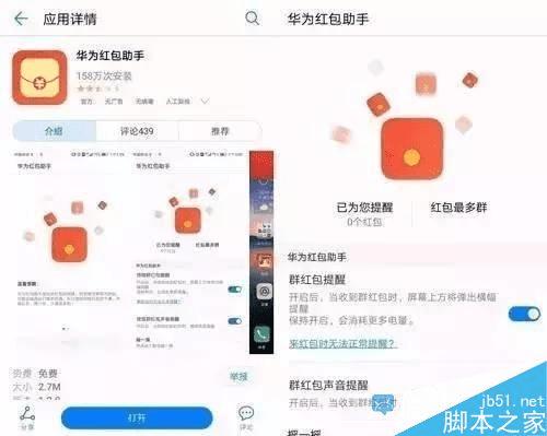 支持微信、支付宝抢红包(提醒),该软件支持华为EMUI3.0以及以上的EMUI版本。