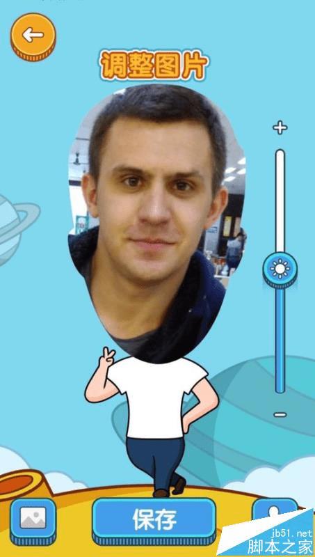 2、选好照片后,调整大小旋转位置至头像完全填充。上下拉动右边的亮度调节按钮调节肤色。最后点击保存