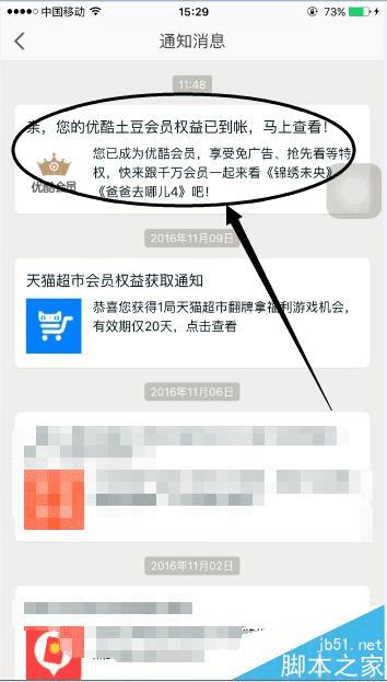 2、1积分领取之后,在消息记录里会出现领取成功的通知消息,点击进入,会有优酷会员权益已经到账的消息,再点击进入,就会看到你领取的账号啦,到期时间是12月份,也就是1个月的黄金会员哦。