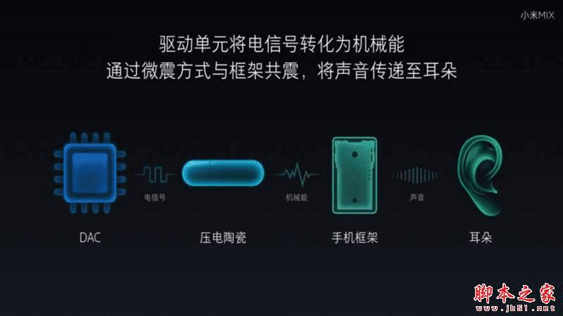 其实早在刚发布时候,我们就曾对此进行介绍。它使用的并不是传说中的骨传导技术,而是悬臂梁压电陶瓷振动然后传导到手机中框的发声方式。也就是把音频数字信号转换成模拟信号,然后引导陶瓷中框共振,最后通过声波传递到耳朵里。