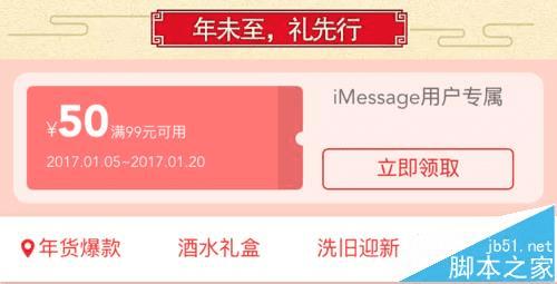 在2017天猫年货节领取imessage50年货券得方法介绍