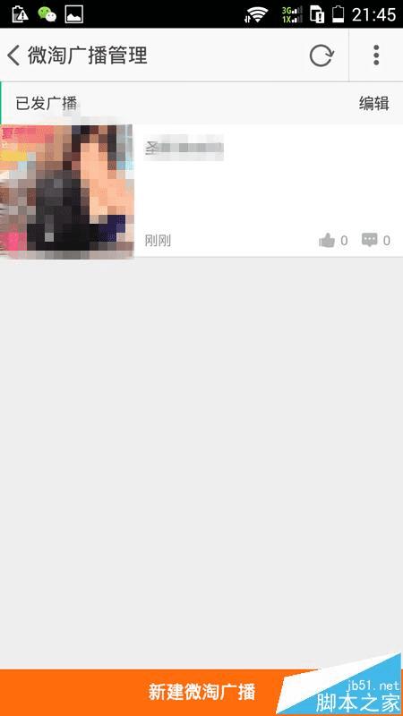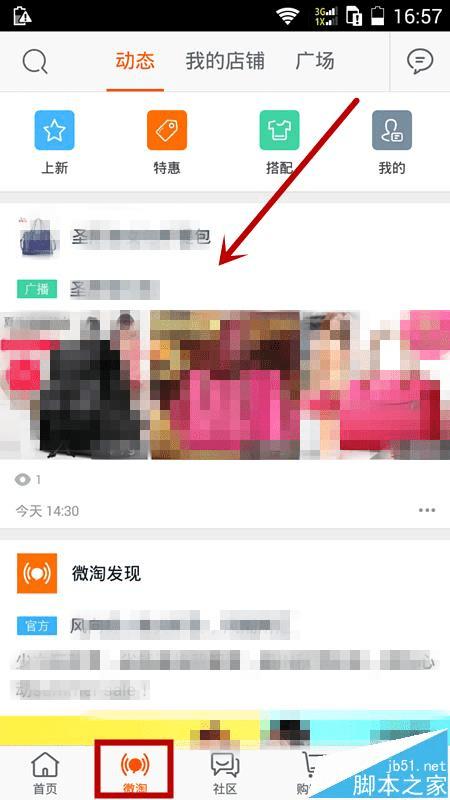 5、此时广播已发。这时可以回到微淘界面,点击“微淘”后即可看到刚刚发布的动态广播。