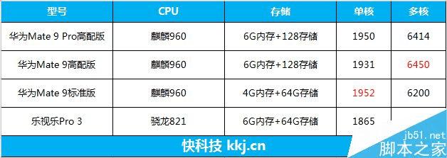 在GeekBench 4 CPU测试中,华为Mate 9 Pro所搭载的麒麟960跑分成绩轻松超过了骁龙821(乐Pro 3),多核成绩达到了6414分,和骁龙821的4452分相比优势非常明显,和之前测试的华为Mate 9高配版不相上下。