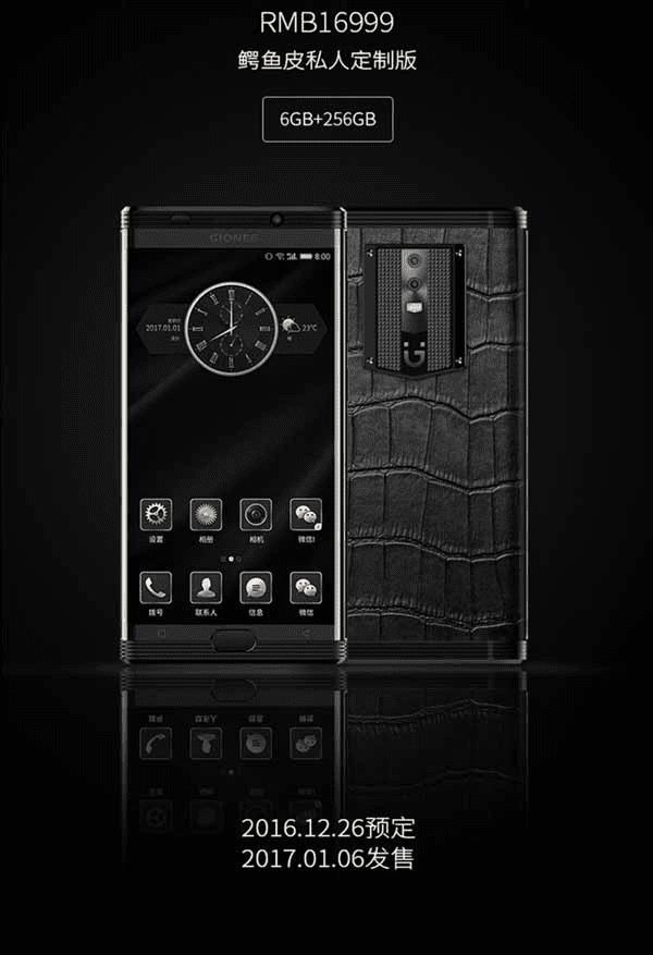 昨日晚间,金立正式发布了专为成功商务精英打造的旗舰手机“M2017”,冯小刚、徐帆倾情代言,6+128GB标准版售价6999元,6+256GB鳄鱼皮私人定制版价格高达16999元。