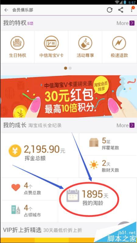 5、进入会员页面,往下翻会看到【我的淘龄】