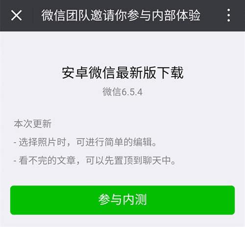 以下是安卓版微信v6.5.4内测版邀请链接,发送给微信好友,点击即可参与: