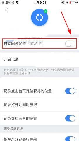 2)接着点击右上角的【设置】,然后找到【自动同步足迹】点击旁边【按钮】即可。(如下图)
