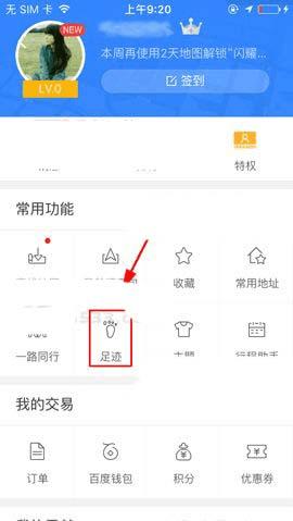 1)打开百度地图点击左上角的【头像】,进入到个人主页再点击【足迹】。(如下图)