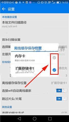 2)打开后接着点击【离线缓存保存位置】,打开后选择你要的选择,点击勾号成蓝色就证明成功了。(如下图)
