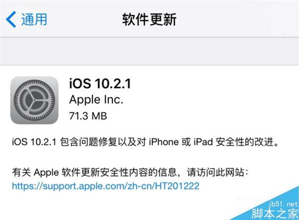 赶在春节前,苹果正式推出了iOS 10.2.1的正式版,体积不算大,在70MB左右。