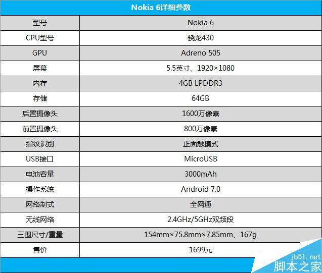 配置方面,Nokia 6采用了5.5英寸1080P显示屏,搭载了骁龙430八核处理器,内置了4GB内存和64GB大容量存储,最高支持128GB存储卡扩展,电池容量为3000mAh。