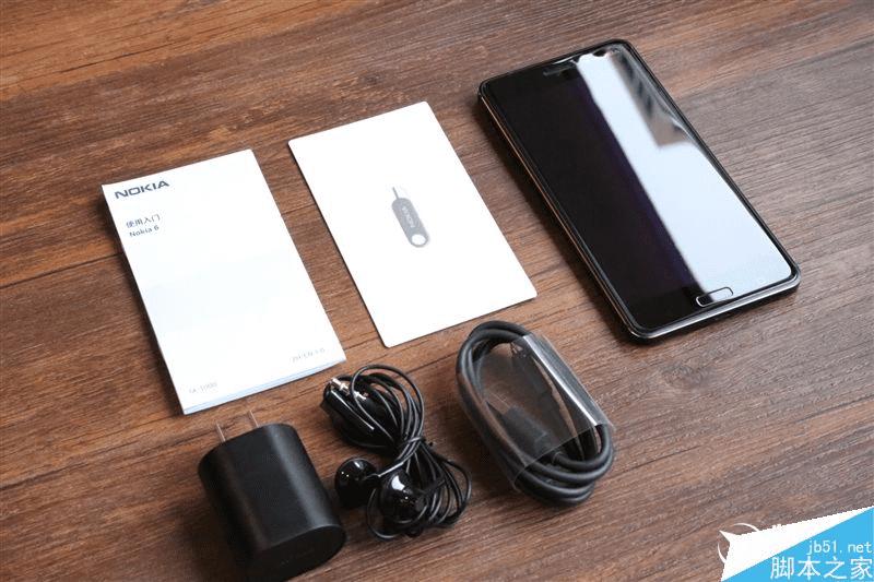 ↑↑↑Nokia 6全家福:主机、说明书、卡针、充电器、数据线、耳机等。