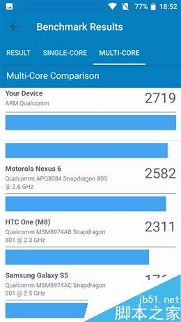 ↑↑↑通过对比看出,骁龙430的单核成绩与Helio P10(魅蓝Note5)的表现相差不大,与骁龙805(Nexus 6)还有较大差距。多核成绩方面,骁龙430凭借多核优势远超竞品。