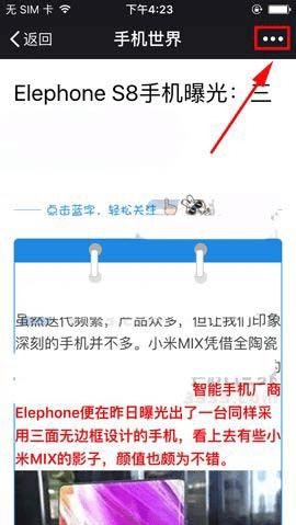 1)我们打开微信来到阅读的文章点击右上角的【三个点】,接着再点击【搜索页面内容】。(如下图)