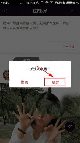 2)进去小圈之后点击【+关注】,随后再点击【确定】即可关注小圈了。(如下图)
