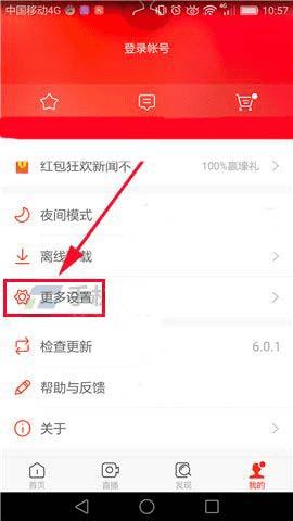 1)首先我们先打开【新浪新闻】界面,然后再点击右下角的【我的】,打开后接着点击【更多设置】。(如下图)