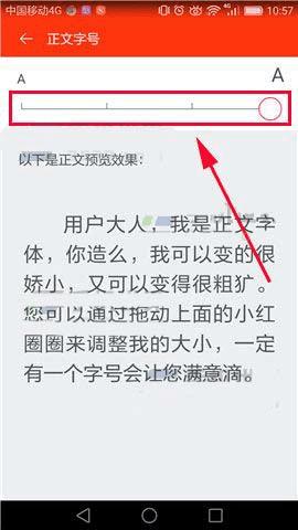 2)打开更多设置之后继续点击【正文字号】,打开后选择你要的选择,然后再点击突起的点就完成了。(如下图)