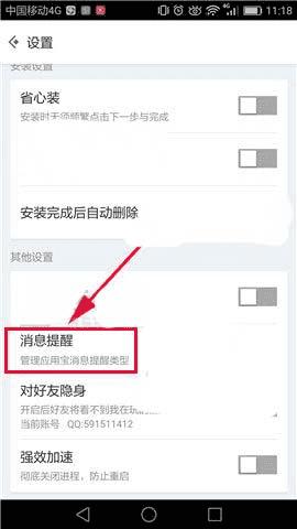 在应用宝app中关闭通知栏消息的方法