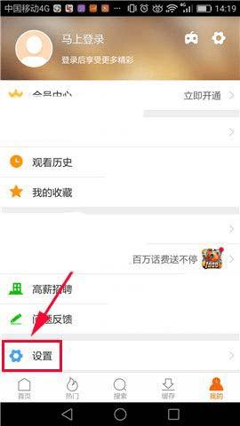 1)首先我们先打开【风行视频】的界面,然后再点击右下角的【我的】,打开后接着点击【设置】。(如下图)