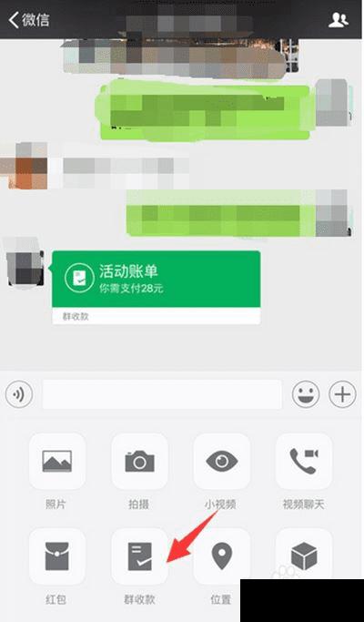 接着,在我们点击了这个+图标按钮后,我们可以看到窗口下方浮出一些功能选项,这里我们注意一个“群收款”的功能。