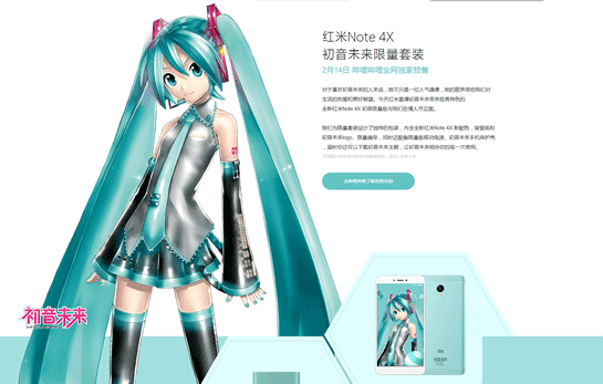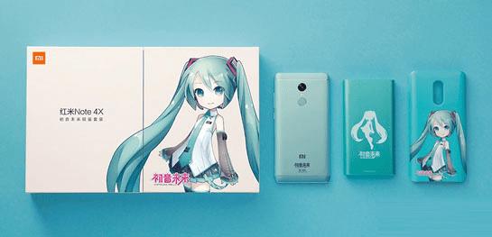 初音限量版拥有独特的包装,内含初音绿版红米Note 4X,背面铭刻初音未来logo、限量编号,还有限量版移动电源、初音未来手机保护壳,并可下载初音未来主题。