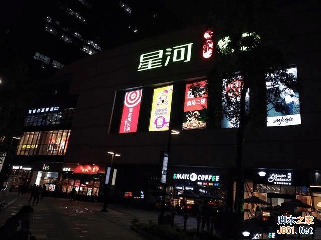本组对焦点在位置居中的灯箱,故而两者的测光都把墙面拍得很黑。相比之下,Note4X因为ISO高画面略微亮一些,这从地面的颜色可以看出来,但灯箱、店面招牌等发光体的表现便有些过亮发白,不如N5。