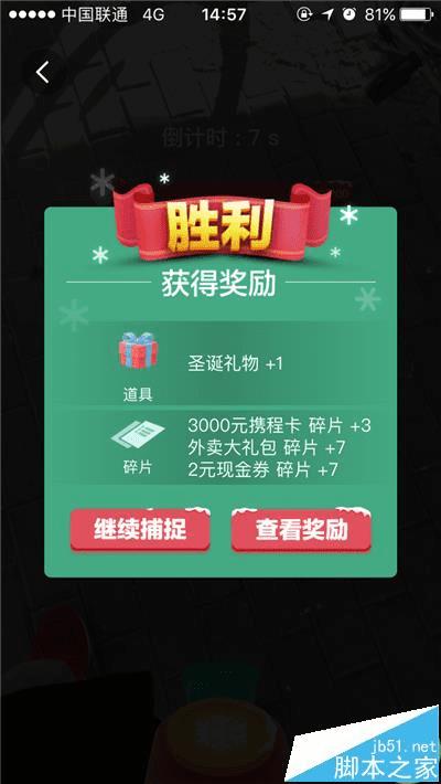 4、点击某一个圣诞老人,开始进行攻击,当然时间限定在10秒内,攻击完成可以得到奖品的碎片。